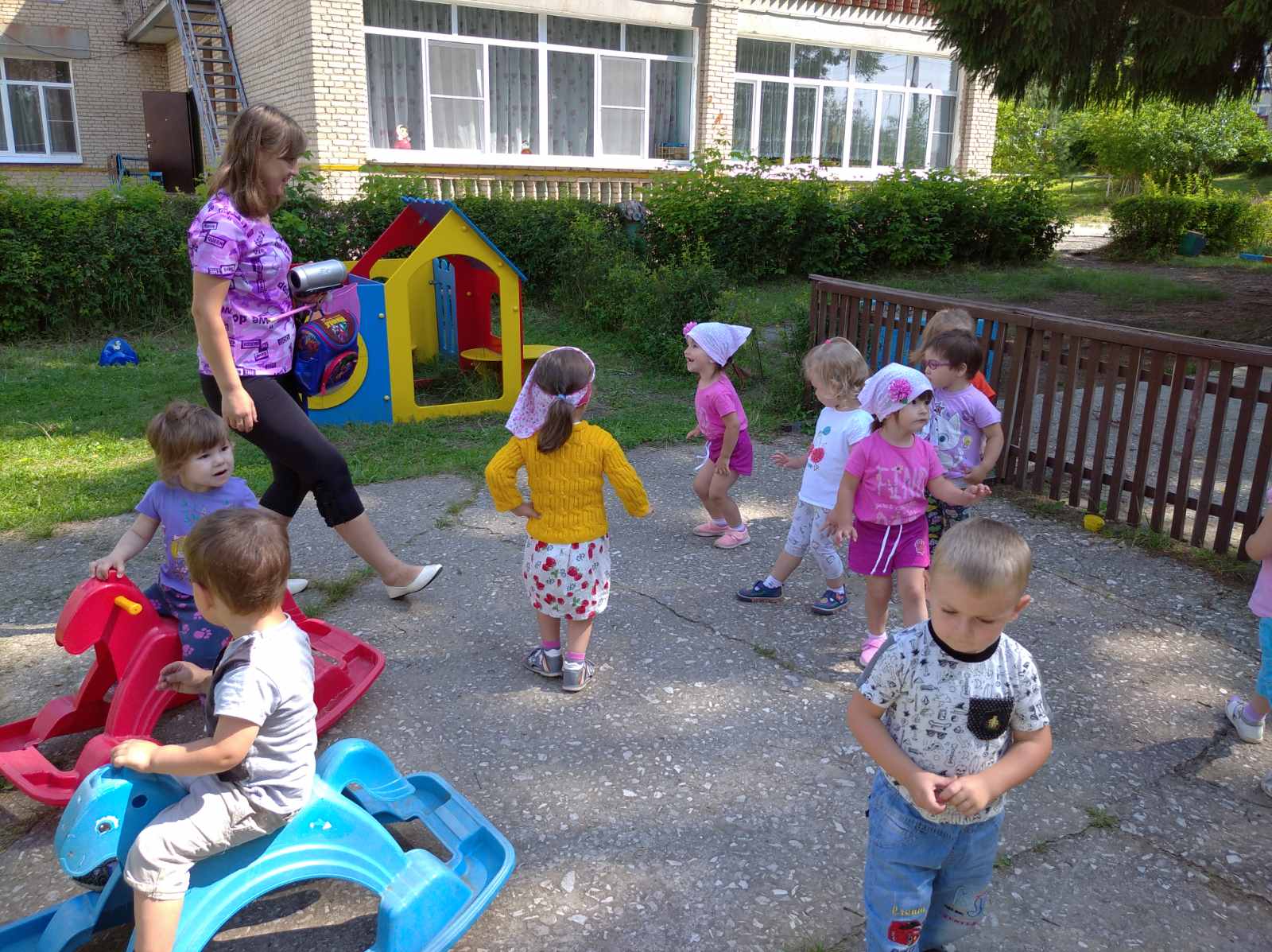 Целью проведения тематической недели Я здоровье берегу, сам себе я помогу стало формирование представления дошкольников о зависимости здоровья, о двигательной активности и закаливании, питании. В течение недели воспитателями групп был организован активный отдых на прогулке: танцы, различные игры.