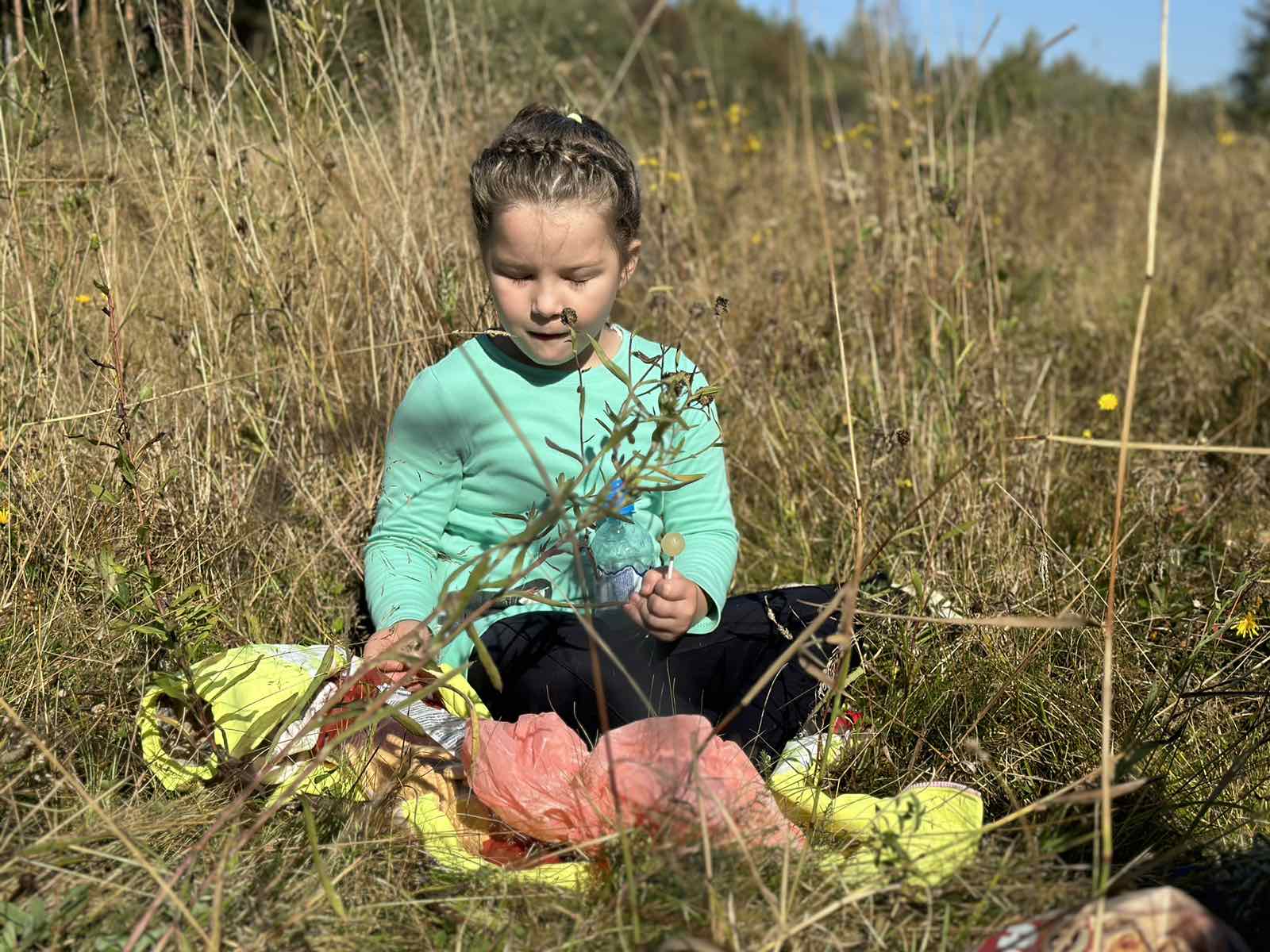 Во время остановки, или как многие ее называют "пикника" - ребятишки развлекались, играли, активно двигались, знакомились с природой.