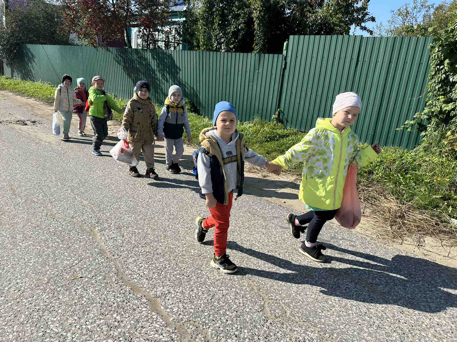 А точнее на поиски осени отправились воспитанники трех групп "Ягодка", "Пчелка" и "Звездочка" в ближайший лес.