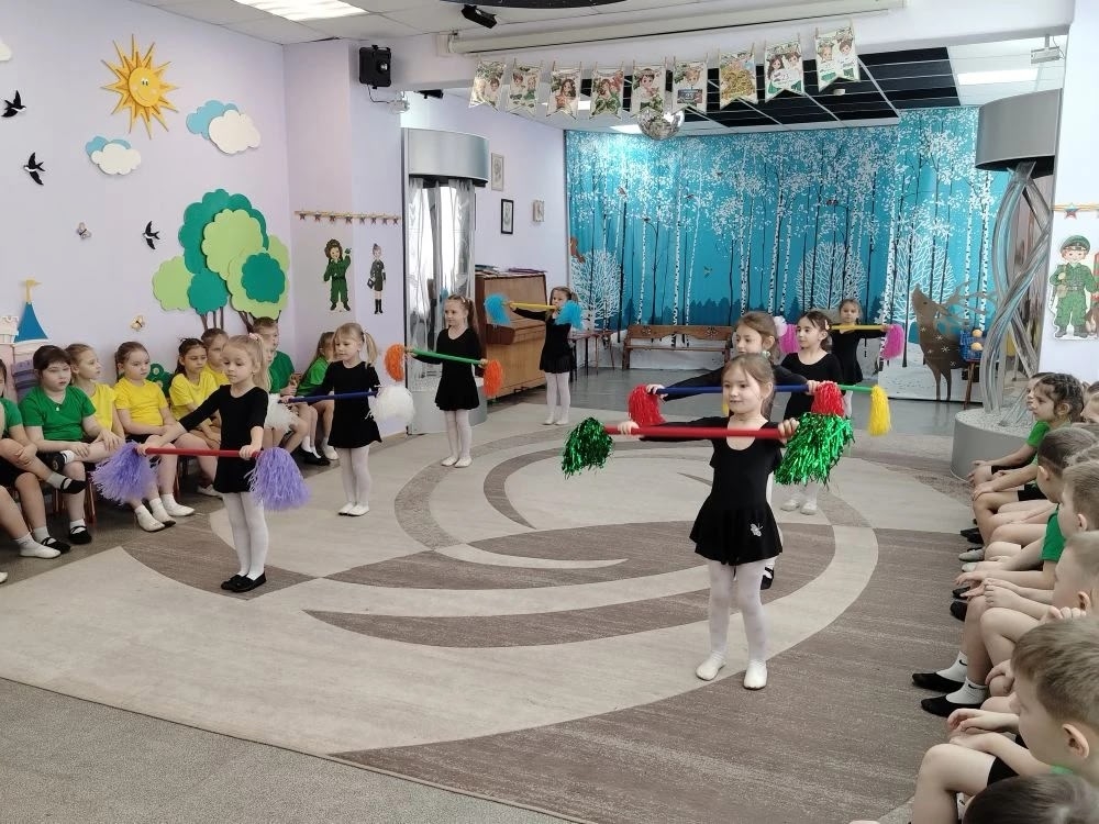 Праздничную спортивно-музыкальную эстафету подхватили воспитанники и родители подготовительных групп "Сказка" и "Улыбка".Наш детский сад превратился в настоящую «тренировочную базу», и главными героями стали дети и их папы, братья и дедушки. Ребята и взрослые соревновались в различных эстафетах, демонстрируя свою силу, ловкость и командный дух. Программа праздника была насыщена интересными и разнообразными играми и эстафетами. И какой же праздник без песни и танца и стихов!